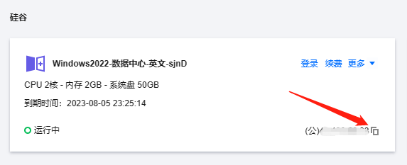 返回到控制台>>>轻量应用服务器>>>就可以看到你新购买的实例,参照下图,把IP地址复制起来