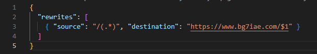 1、把以上代码保存为 vercel.json,这个文件里面的域名部分,改成域名2(目标域名)